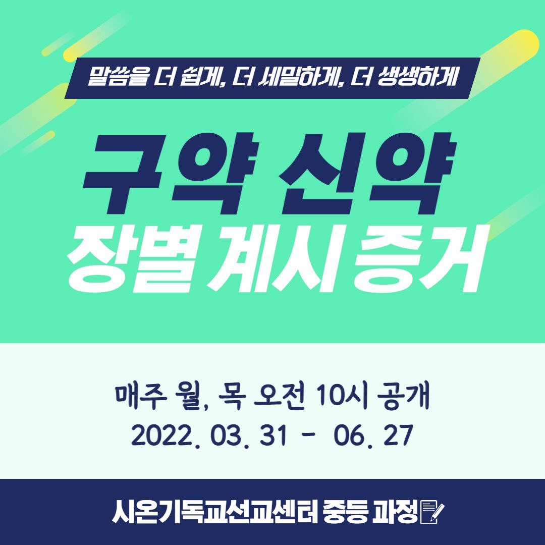 3월 31일부터 6월 27일까지 진행되는 중등 세미나는