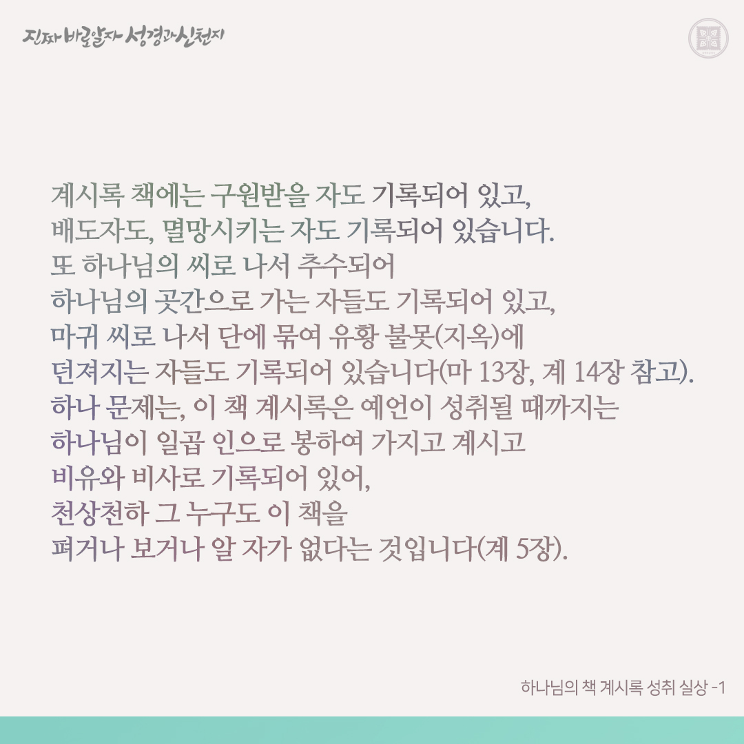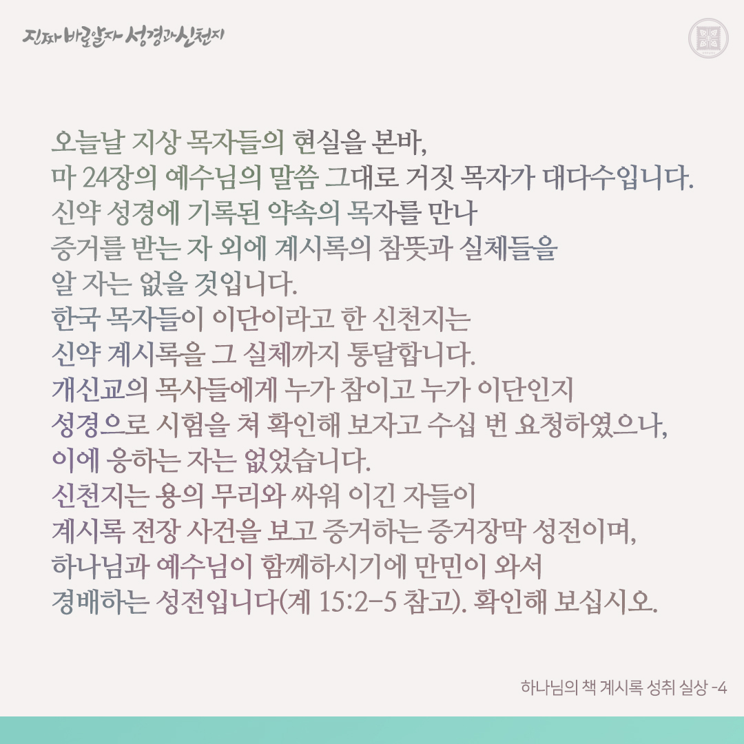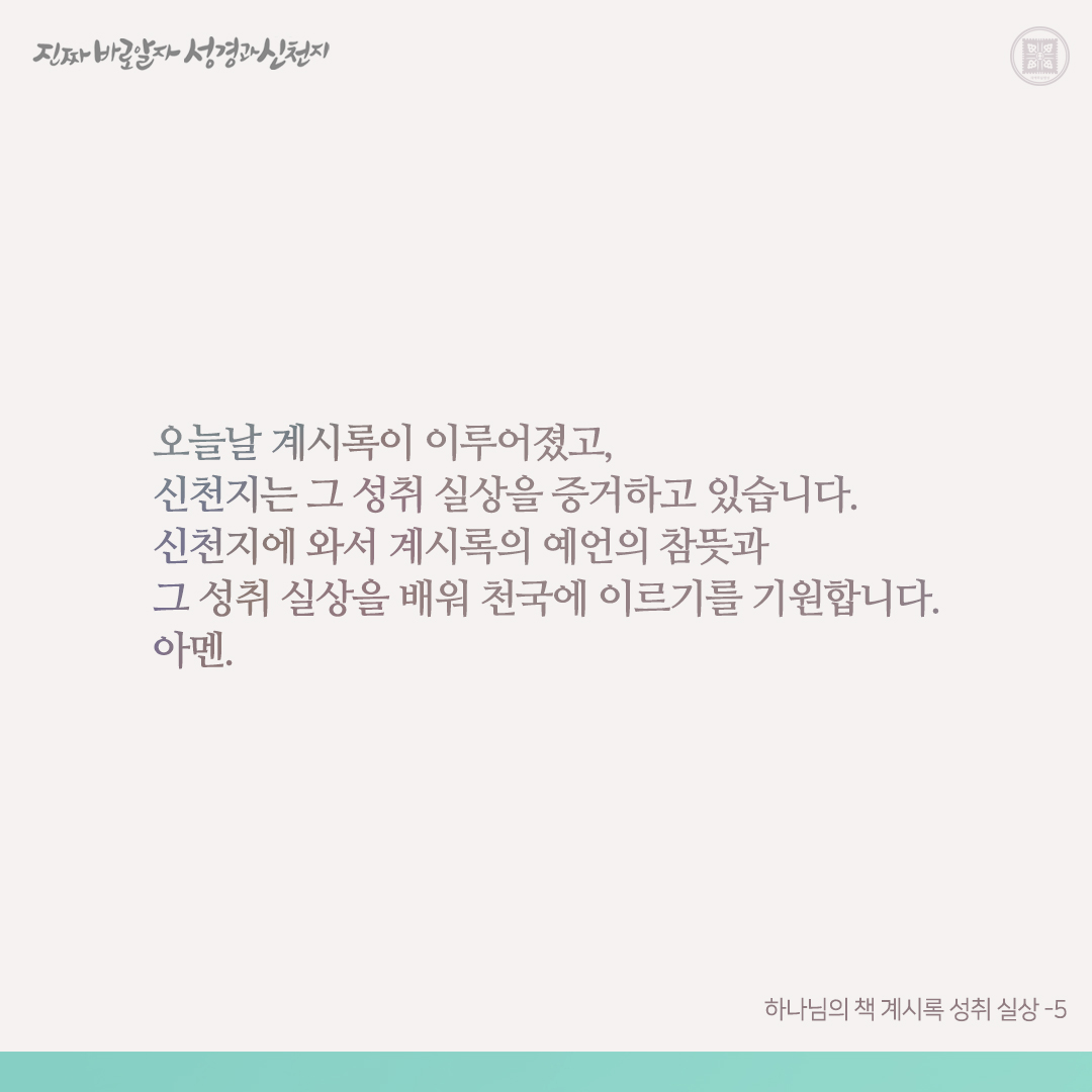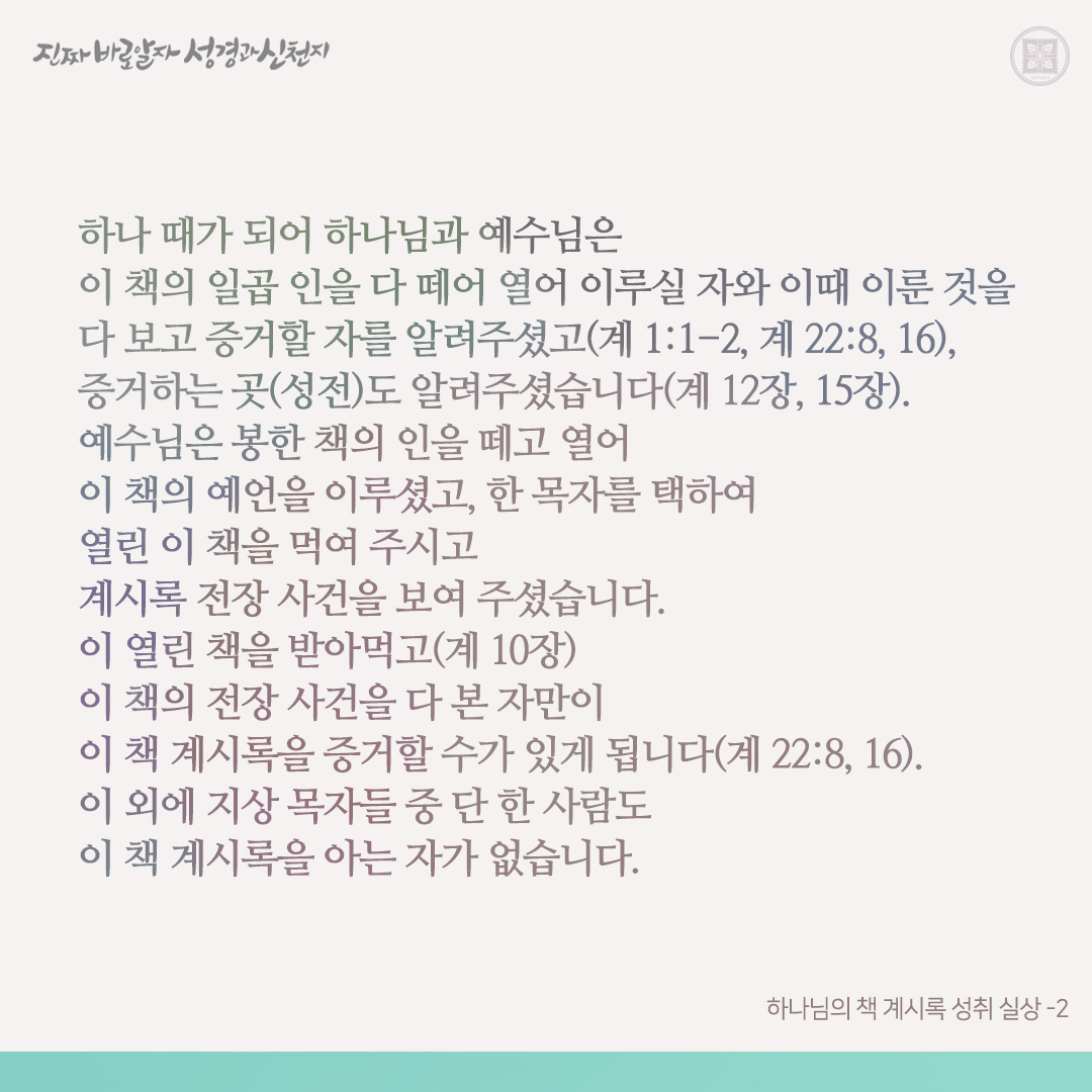 하나님의 새 언약 곧 계시록이 이루어진 실상을