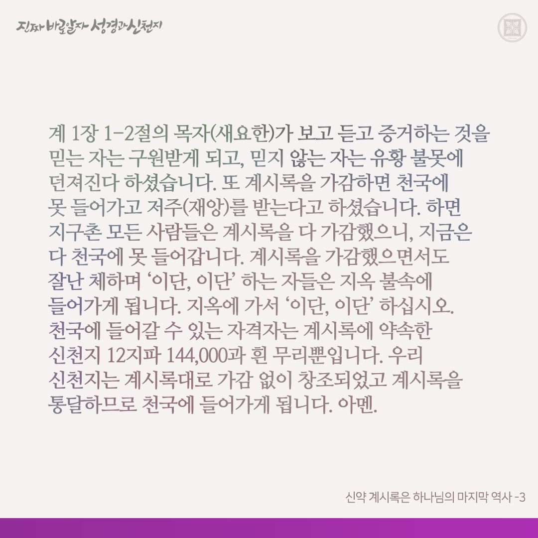 신앙인이 계시록을 통달하지 못하면 천국에 못 갑니다.